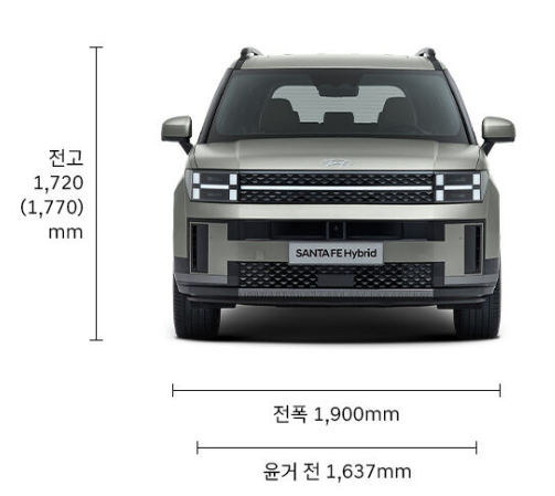 - 전고: 1,720mm (캘리그래피 트림은 1,730mm)