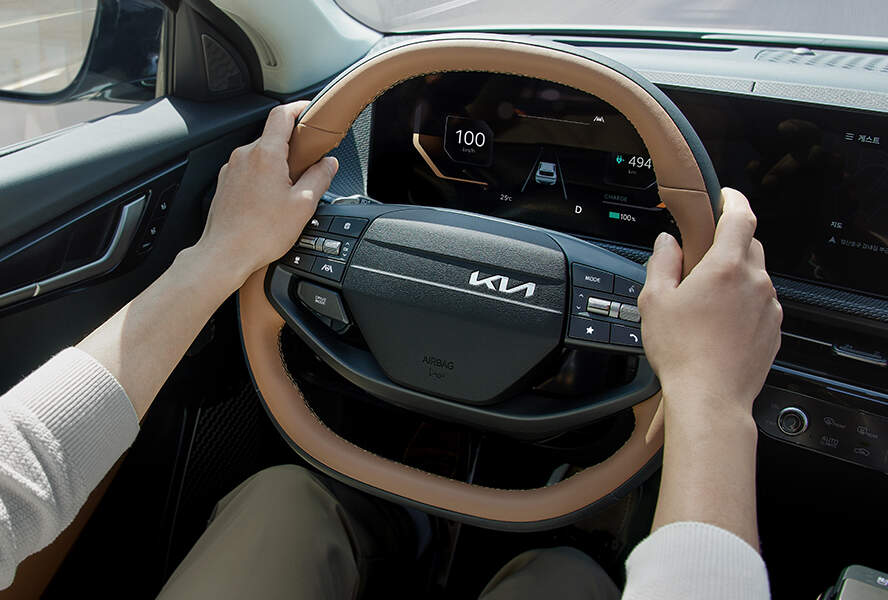 기아 EV6의 실내는 넓고 쾌적합니다.