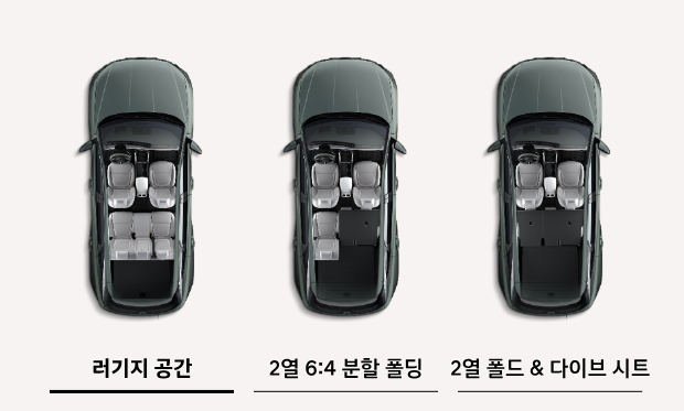 2열 시트를 접으면 최대 1,799L의 적재 공간을 확보할 수 있어, 다양한 용도로 활용이 가능합니다.