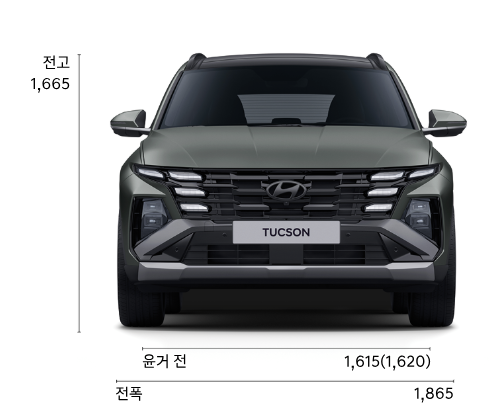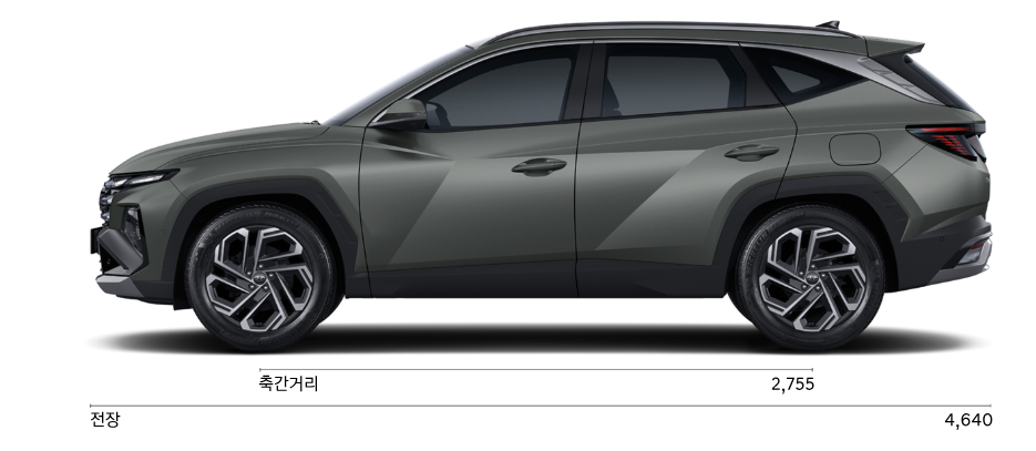 현대 투싼의 제원을 보면, 전장 4,630mm, 전폭 1,865mm, 전고 1,665mm로 안정감 있는 비율을 자랑합니다.