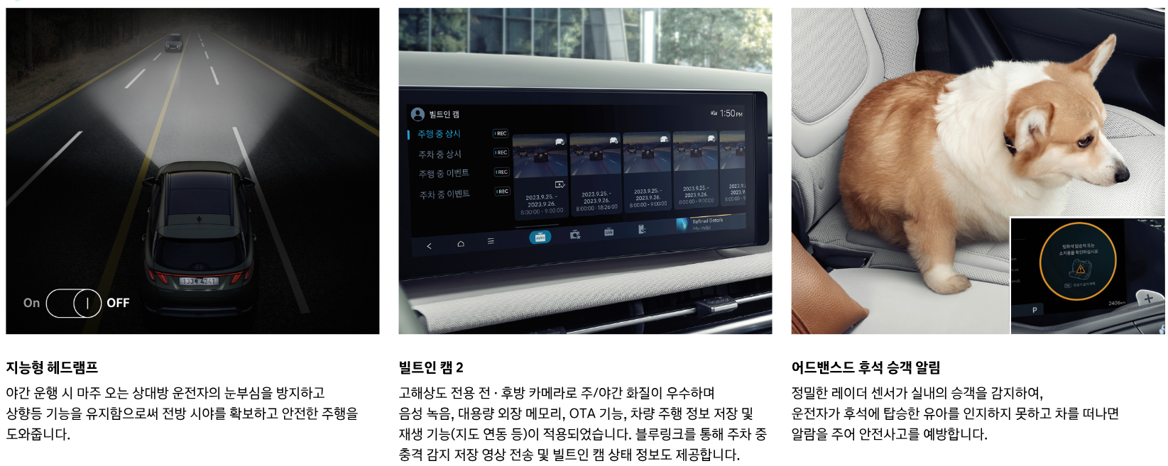또한, 후측방 충돌방지 보조, 안전 하차 경고 등의 기능도 높은 트림에서 만나볼 수 있습니다.