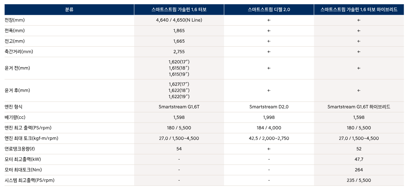 가솔린 1.6 터보, 디젤 2.0, 하이브리드 1.6 터보 등 선택의 폭이 넓습니다.