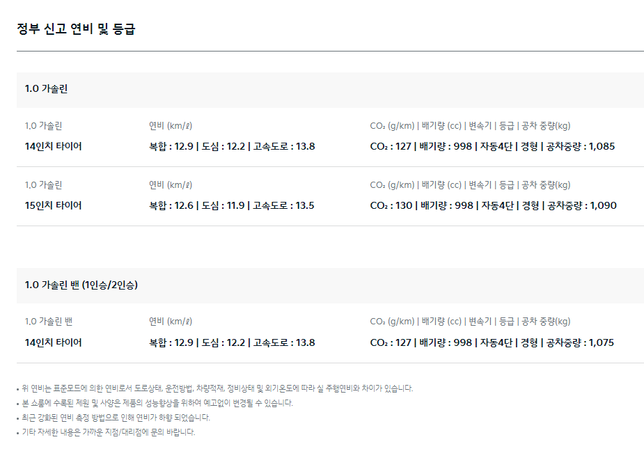 현대 더 뉴 캐스퍼 가격표 제원 연비 정리