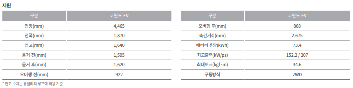 KGM 코란도 EV의 상세 제원