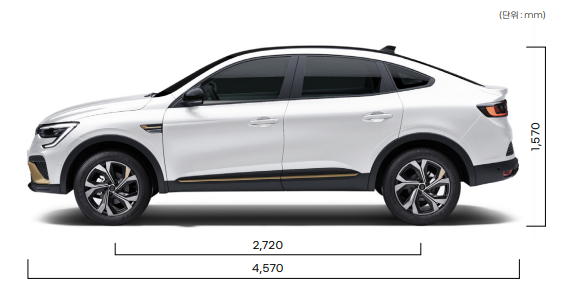 - 아르카나: 4,570 x 1,820 x 1,570mm