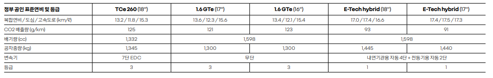 특히 E-TECH 하이브리드 모델의 연비가 인상적입니다.