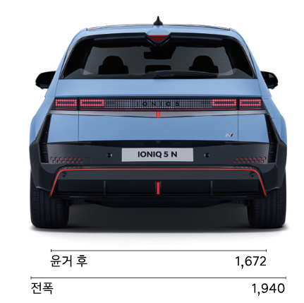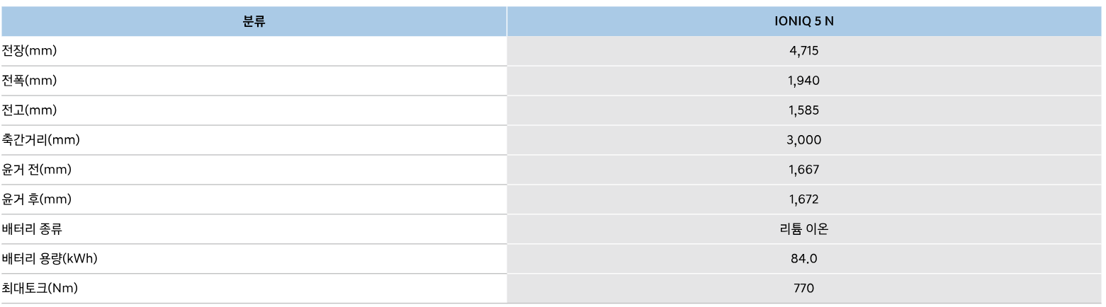 이러한 제원은 아이오닉5 N이 실제로 넉넉한 실내 공간을 제공할 수 있는 이유가 됩니다.