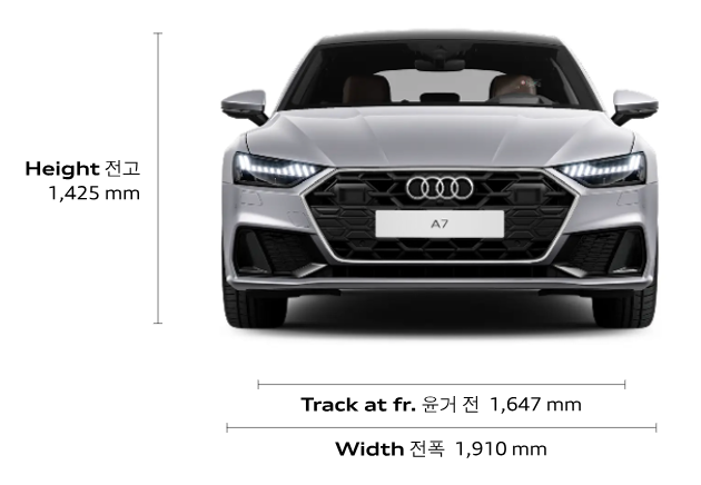 아우디 A7의 제원은 동급 세단들과 비교했을 때 경쟁력 있는 수준입니다. 특히 넓은 실내 공간과 안정적인 주행 성능을 제공하는 것이 특징입니다.